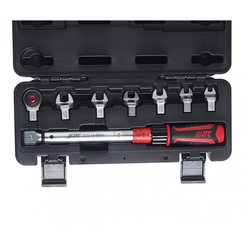 Ключ динамометрический 10-60Нм 9-12мм с рожковыми насадками 7-13мм 8 предметов JTC JTC-6832K