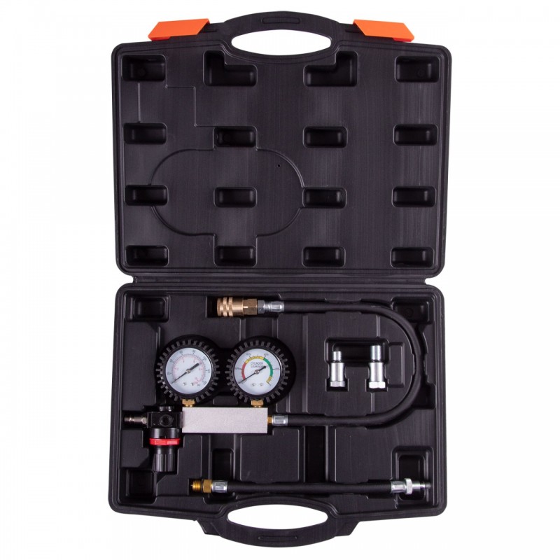 Назначение: проверка герметичности в цилиндрах бензиновых двигателей. Комплектация – Блок манометров 0-10 бар (0-100 psi) / 100-0 % – Регулятор давления – Шланг 450 мм + БРС муфта – Шланг 250 мм с клапаном + БРС штуцер – Адаптеры M12,