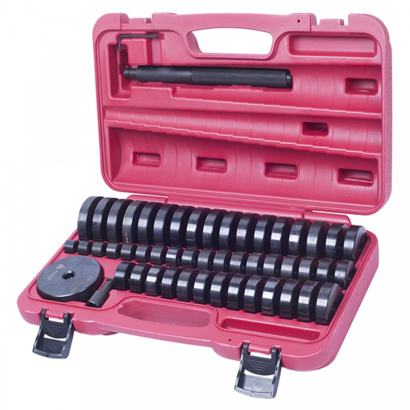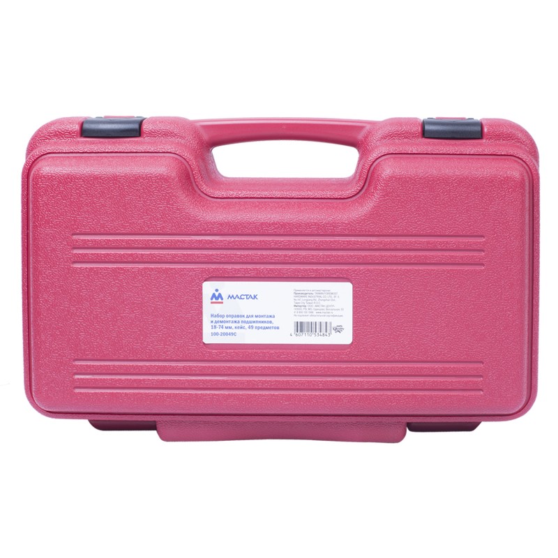 Набор оправок для монтажа и демонтажа подшипников, 18-74 мм, кейс, 49 предметов МАСТАК 100-20049C предназначен для работ по демонтажу подшипников, а также сальников. Особенности • Применение напора позволит исключить повреждения поверхностей