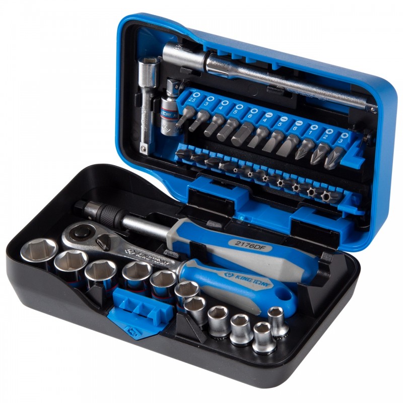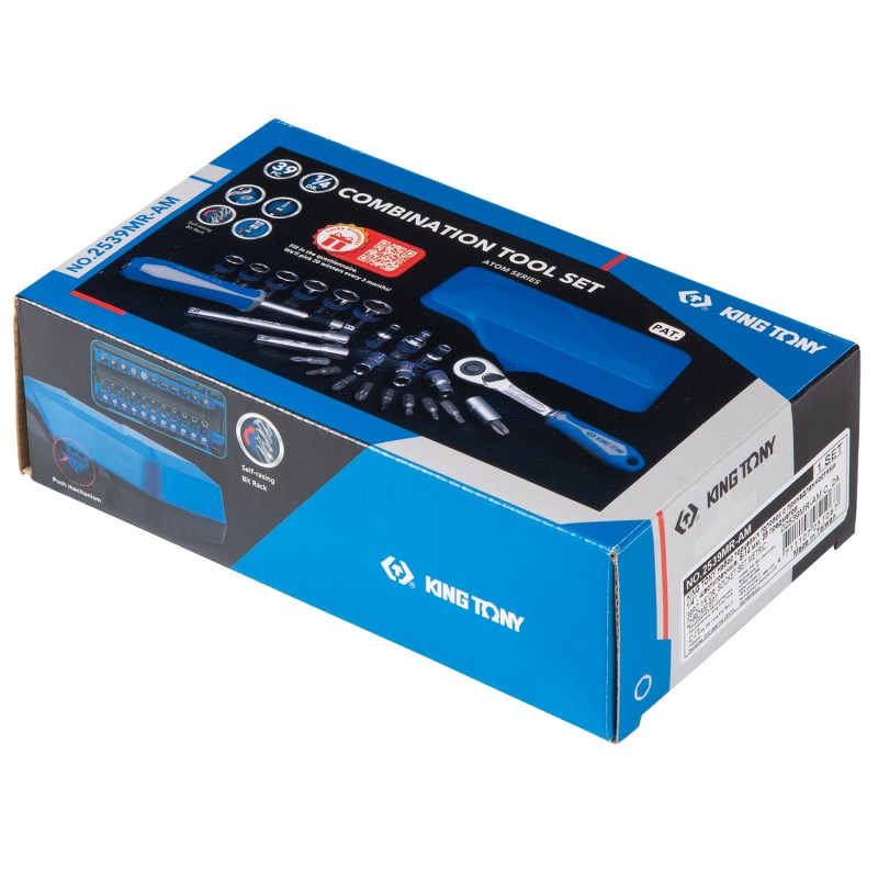 Набор торцевых головок с принадлежностями серии АТОМ, 1/4, шестигранные, 5-14 мм, 39 предметов KING TONY 2539MR-AM
