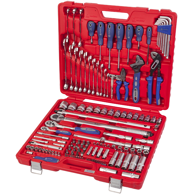 Набор инструментов универсальный, 133 предмета МАСТАК 0-133C - наиболее полный по составу и функциональным возможностям набор инструментов фирмы МАСТАК. Ключи и головки различной конфигурации и типов, насадки различного профиля, всевозможные