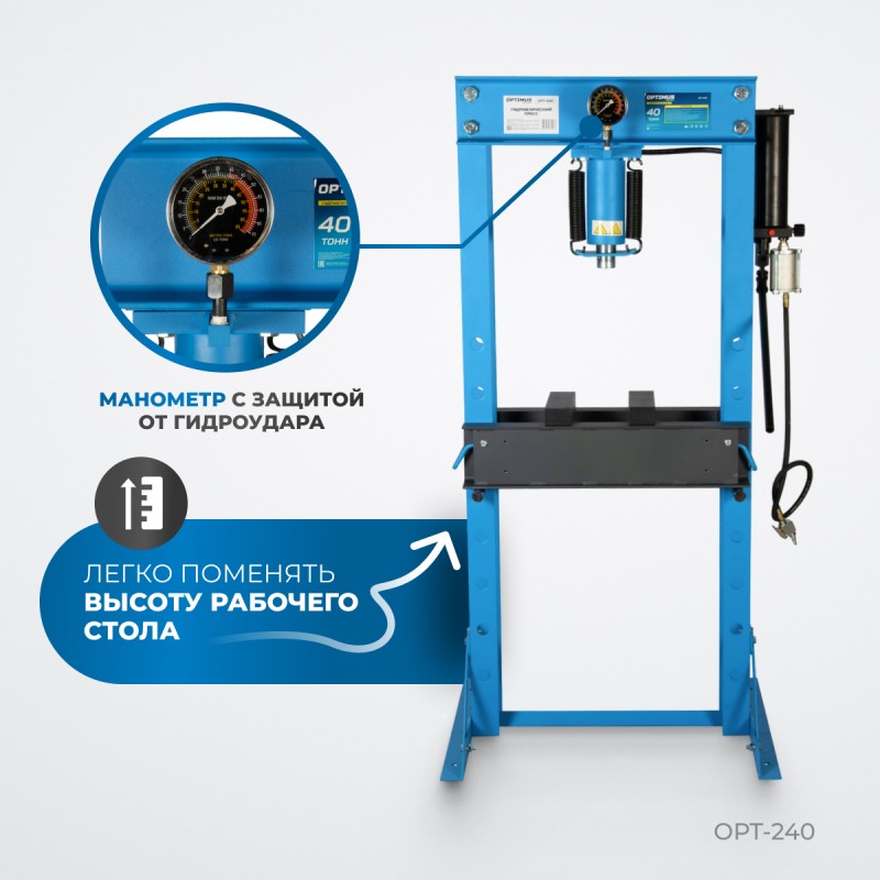 Пресс гаражный 40 т, с ручным и пневмогидравлическим насосом OPT-240