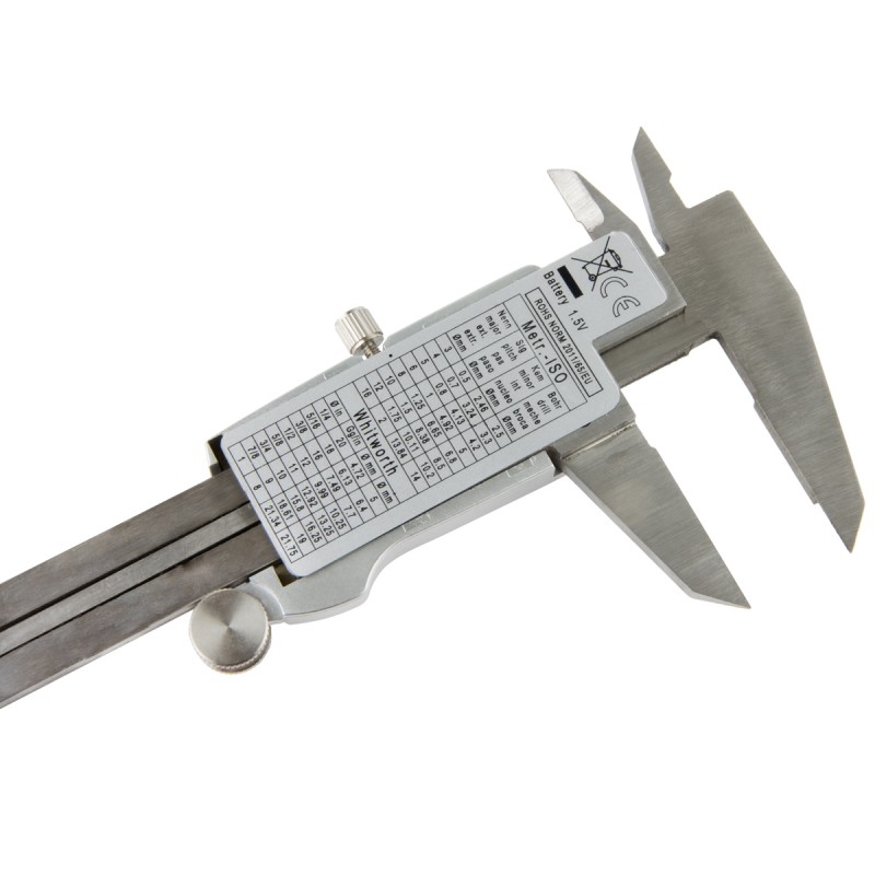 Диапазон измерения штангенциркуля составляет от 0 до 150 мм, что позволяет использовать его для замера маленьких деталей. Это делает инструмент универсальным и подходящим для различных областей применения: строительных работ, ремонта автомобилей или садовых работ. С помощью электронного штангенциркуля можно легко измерить внутренний и внешний диаметр, глубину и толщину объектов.