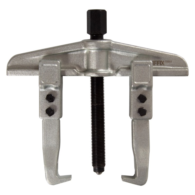 Назначение Демонтаж подшипников, шкивов и прочих деталей, запрессованных в обойму или установленных на вал. Комплектация – Траверса 2-х захватная – Лапы захватные 100 мм (2 шт.) – Силовой винт 160 мм с резьбой M14?1.5 Диапазон захвата