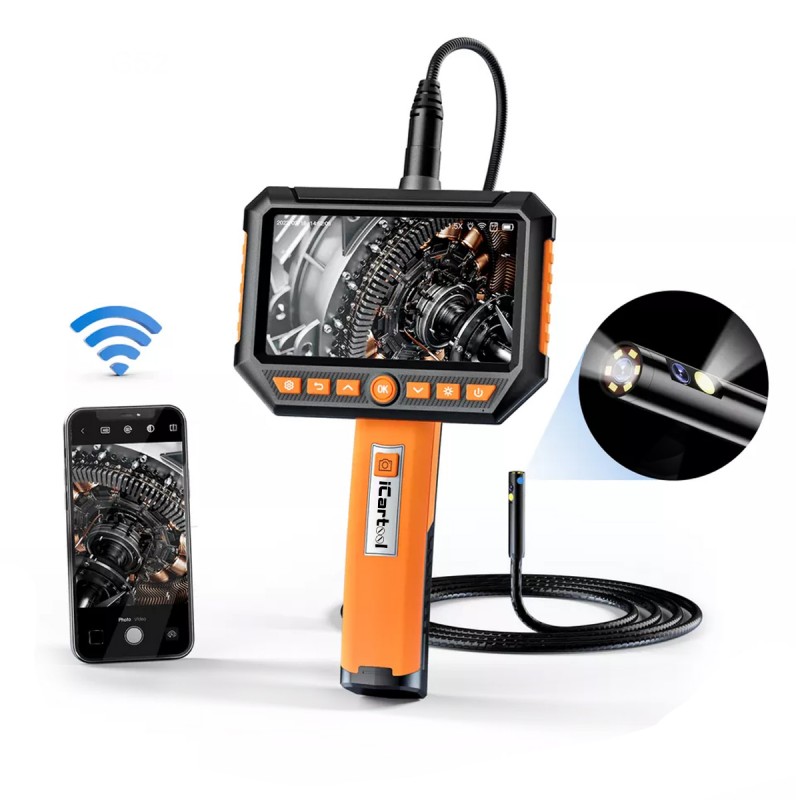 Промышленный видеоэндоскоп iCartool IC-V116B оснащен большим информативным дисплеем, модулем Wi-Fi, микрофоном и съемным зондом 5.5 мм с двумя камерами. Экран с диагональю 5” и технологией IPS имеет удобный интерфейс и воспроизводит изображения в отличном качестве с разрешением HD.
