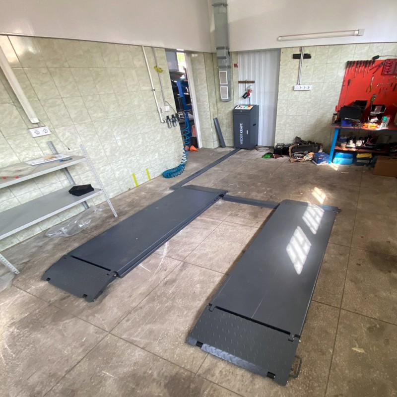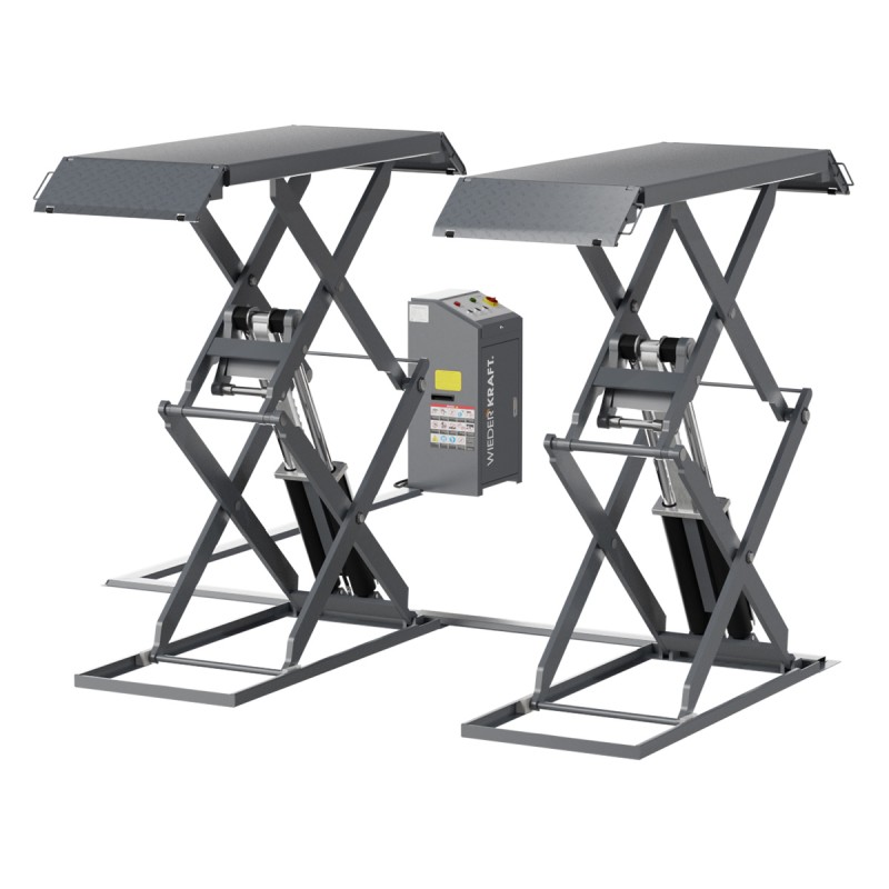 Подъемник ножничный 3,5 тонны WiederKraft WDK-505X с пневматическим управлением стопорного механизма отличается компактной конструкцией и предназначен для монтажа на поверхности пола без углублений.