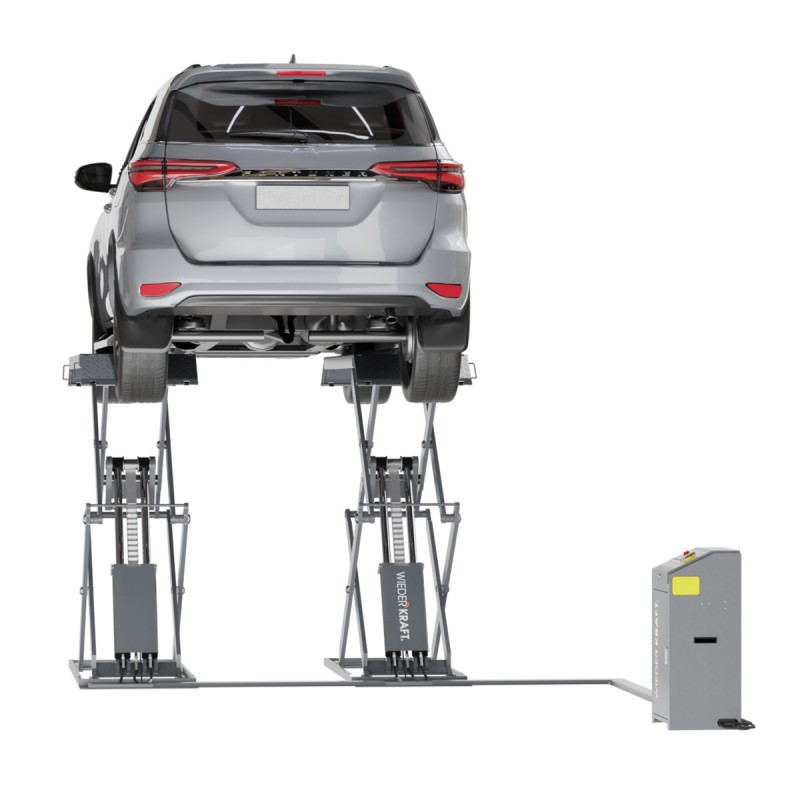Улучшенная гидравлическая система позволяет равномерно управлять подъемом платформ за счет автоматической системы синхронизации (компенсация синхронизации при помощи кнопки). Вся электро- и гидропроводка полностью скрыта, защищая как элементы подъемника, так и обеспечивая безопасность эксплуатации. Плавность подъема и спуска автомобиля достигнута за счет двойного привода цилиндров.