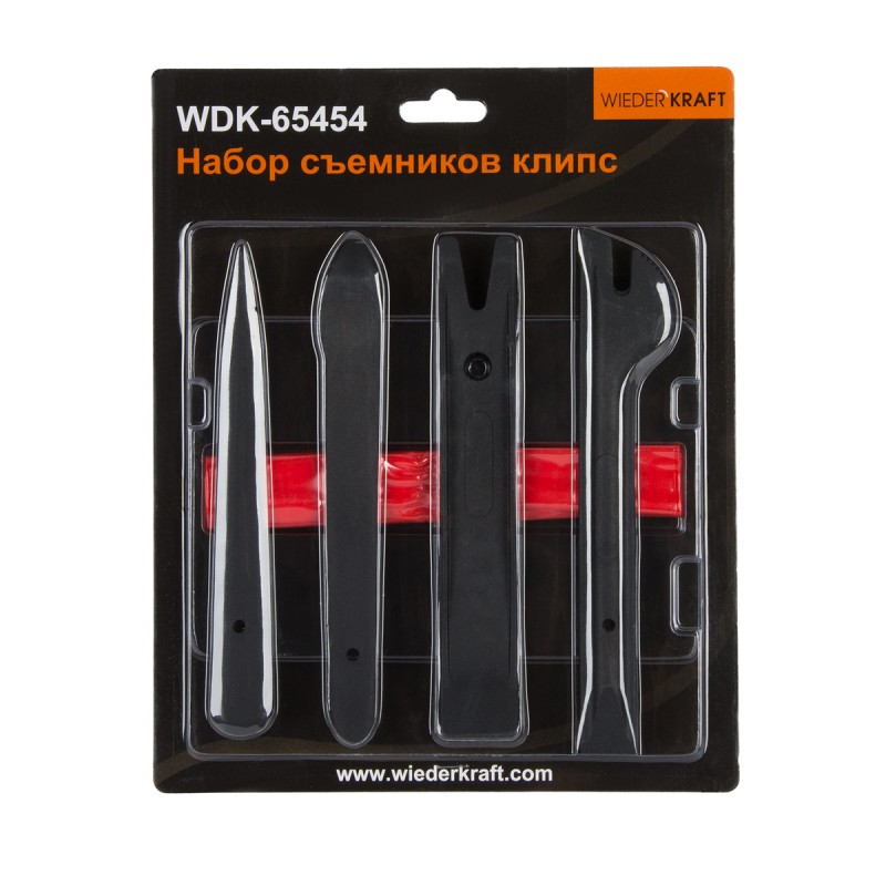 Корпус изделий набора съемников для панелей интерьера автомобиля WiederKraft WDK-65454 выполнен из пластика.
