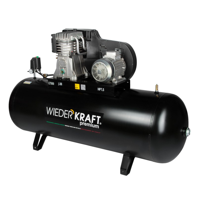 Профессиональный стационарный компрессор WiederKraft WDK-95079 с ременным приводом оснащен высокопроизводительной компрессорной головкой и ресивером большого объема. Производительность 798 л/мин, мощность 4 кВт, подключение 380 В, объем ресивера 500 л.